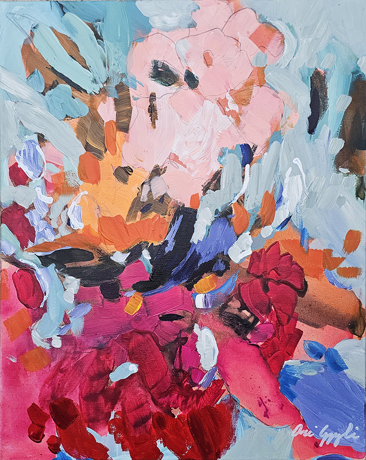 This piece is part of a cohesive floral abstract series exploring emotion, movement, and Mediterranean light.
